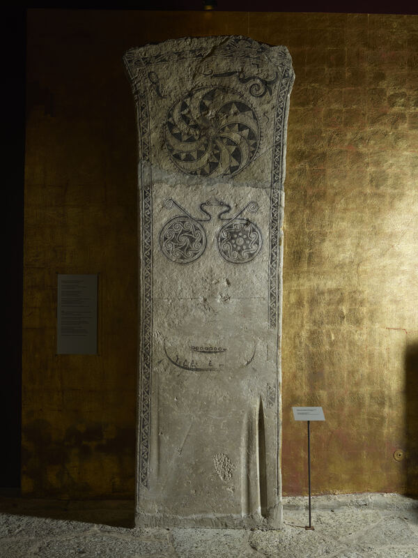 The opinions on the meaning of the smaller paired spiral motifs underneath are less uniform, but they are regarded as part of the overall cosmological symbolism in general (Althaus 1993, p. 83; ARRHENIUS 1979, p. 263; Ellis Davidson 1960; HOLMQVIST 1986, p. 376; Oehrl 2019a, p. 120). As a deviation from this interpretative scheme, Hauck (1983b, pp. 546 f.) regards those circular pairs as Hel’s world, which he connects with his interpretation of the stylized tree as a mistletoe – an attribute of Hel. He also compares the spiral motifs to depictions of mazes as known from Roman mosaic floors and, therefore, regards them as another station on the path of death. Based on this, he concludes that the early picture stones would be pictorial versions of pre-Christian prayers of distress.