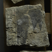 Measurements, Material and Condition Limestone slab, up to 10 cm thick. The width of the preserved piece is 0.54 m (the width of the complete head was about 0.60 m), its height 0.45 m. It is a part of a head of a picture stone, with the left side broken off. The fragment was broken into two parts, but it was mended.
