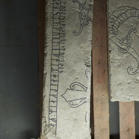 Runic Context and Comments The inscription states that no fewer than three people took part in the carving. Other examples of sharing the task include, e,g., GP 208 Hogrän kyrka I and several other stones (see GR 3: Boge socken, G 276; Åhlén 1997, p. 58). It has been calculated that c. 12 % of the signed runestones, 33 out of 265, have been signed by more than one carver. This seems to be particularly common on Gotland, even though the number of signed Viking-age runestones is low. Furthermore, Gotland is the only region where we find more than two carver names (Källström, 2007, pp. 185–186).