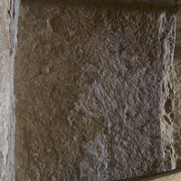 Context and Discovery “Fragment, installed as bottom slab in a niche on the east side of the wall opening between choir and sacristy. The obverse is facing upwards and is partially hidden by the masonry. The hewn, whitewashed stone forming the lintel of the same niche possibly is another piece of the same picture stone. The stone was first observed by E. Lundmark” (Lindqvist 1941/42 II, p. 48). According to the 1977 inventory, a glass case was placed over the stone. In “Sveriges Kyrkor” (Roosval 1947, p. 101) it is said that faint remains of carvings are discernible on the plastered lintel stone as well; however, they have not been checked yet. More picture stones have been found in the ceiling of the stairway in the northern wall of the choir (GP 108 Gothem kyrka I [A]), in the floor of the sacristy (GP 110 Gothem kyrka III), and in the floor of the choir, just in front of the altar (GP 111 Gothem kyrka 4).