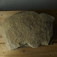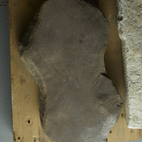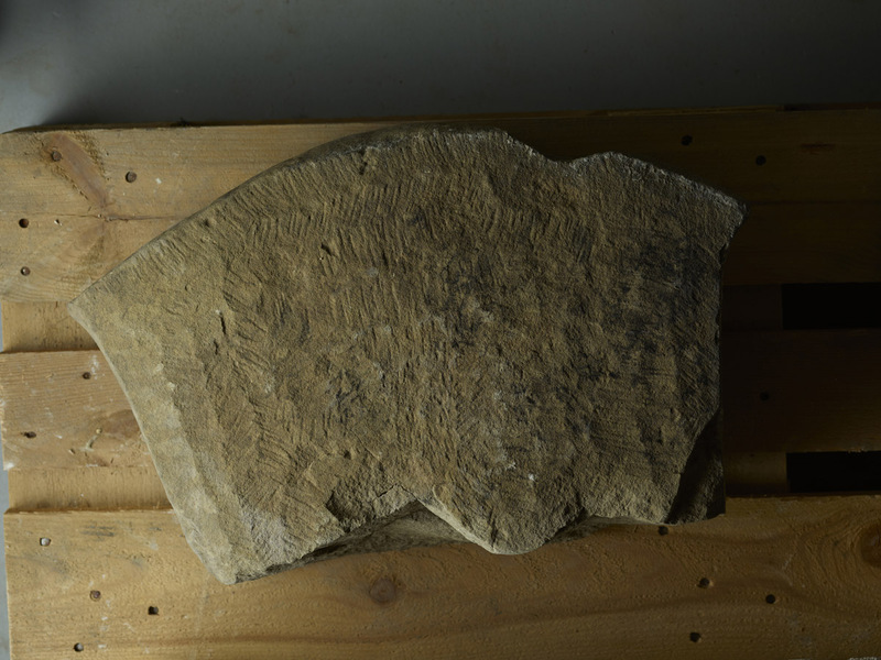 Measurements, Material and Condition The fragment, which, remarkably, is made of sandstone (see IX), represents the upper part, i.e., the head of a small picture stone and is 35 cm high, 55 cm wide, and 14 thick. The top is somewhat convex, almost ogival, and the corners protrude somewhat. Part of the two lateral edges are preserved; the stone becomes narrower towards the bottom. A small piece at the top is broken off. The edges are not chamfered. The surface of the stone shows numerous traces of processing, i.e., tool marks, which can be described as herringbone patterns and are reminiscent of tool marks on medieval building stones. The fragment appears to preserve an early stage of manufacturing, just after the stonemason had straightened the surface with iron tools and chiselled away irregularities, but before the surface was polished in order to make it ready for decoration. This is a unique find. Apparently, the stone was considered unsuitable, possibly because it had broken during processing, and was therefore never finished and used in the grave construction instead – a waste slab from a stone carver’s workshop, recycled in a contemporary burial (Äijä 1980, p. 121).