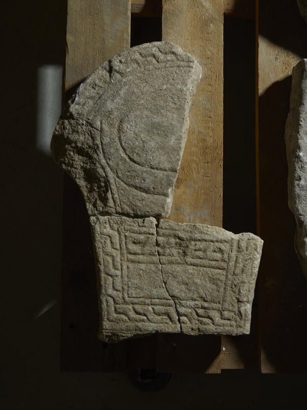 Tre fragment av en bildsten påträffades vid grävning av ett schakt utanför klosterruinen i Roma. Fragmenten fördes till Statens Historiska Museum 1912.