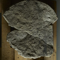 Measurements, Material and Condition “Limestone slab, up to 11 cm thick. The obverse is quite even […]. The narrow sides are 5–6 cm wide, carefully hewn flat at right angles towards the obverse, and separated from both the obverse and the reverse by a chamfer about 1 cm wide. Apart from this chamfer, the reverse is raw. The stone’s height is 104 cm, of which 75 cm are accounted for by the part above the root. The width between the upper corners is 55 cm, at the narrowest place of the body, it is 42 cm, and 46 cm at the lower edge of the decoration” (Lindqvist 1941/42 II, p. 110). The stone is completely preserved, including its root, and essentially undamaged; only the right protruding corner of the head is a bit battered.